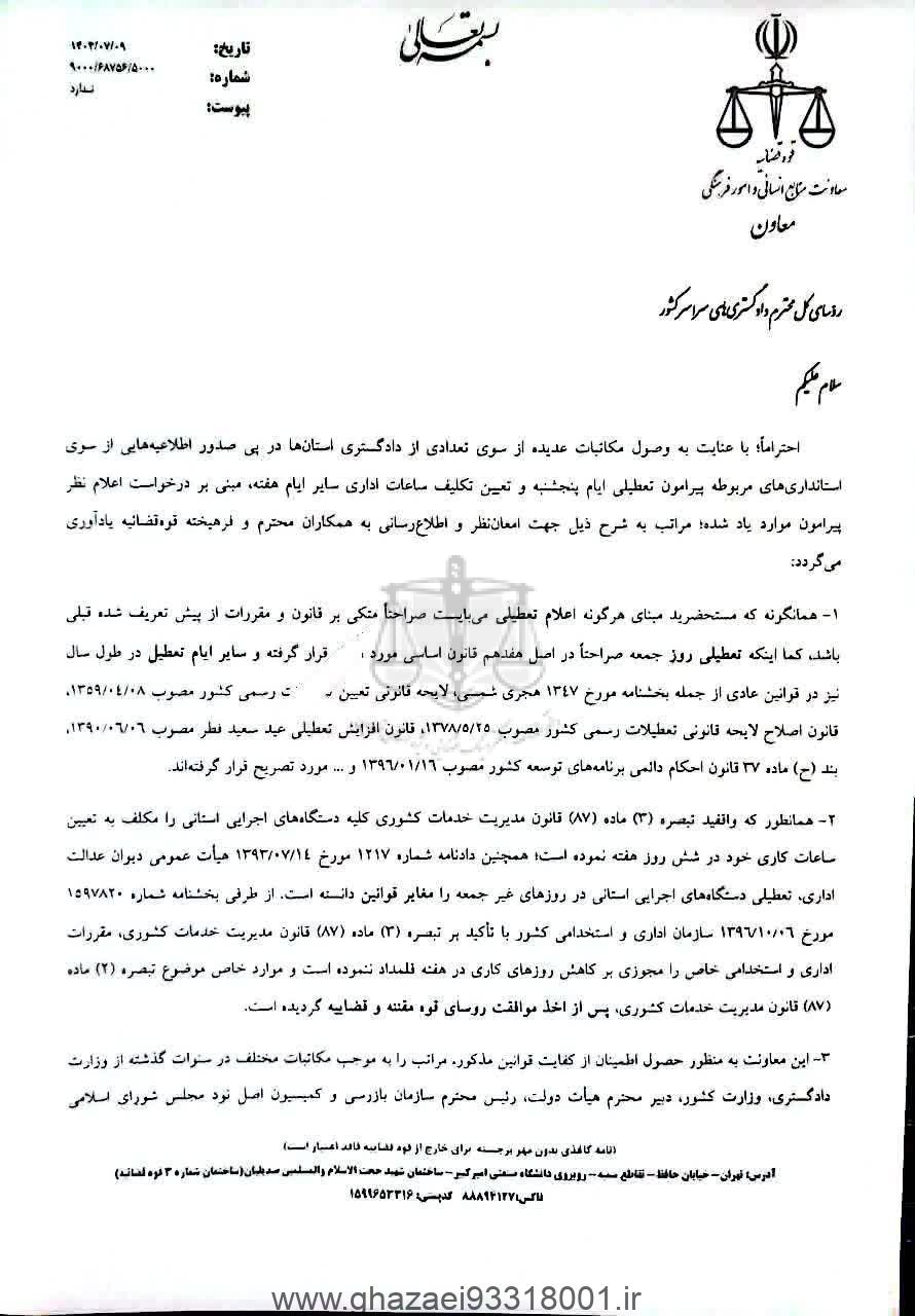 بخشنامه مخالفت قوه قضاییه با تعطیلی پنج شنبه ها