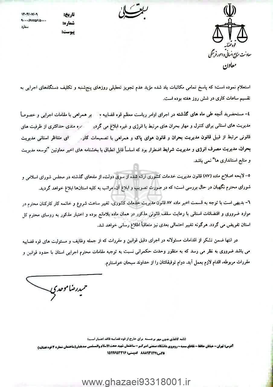 بخشنامه مخالفت قوه قضاییه با تعطیلی پنج شنبه ها