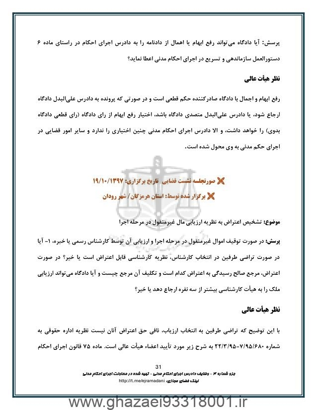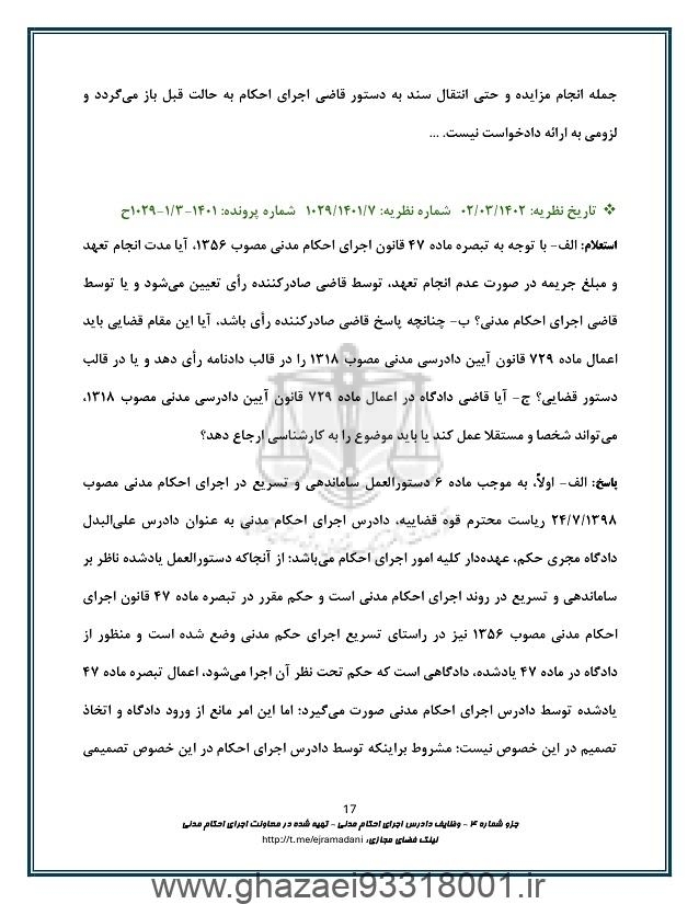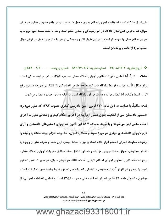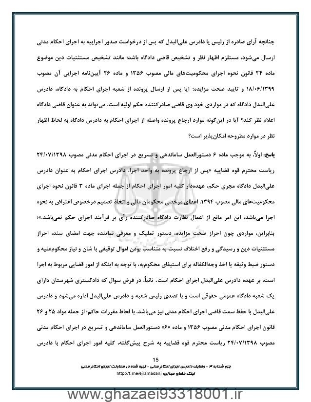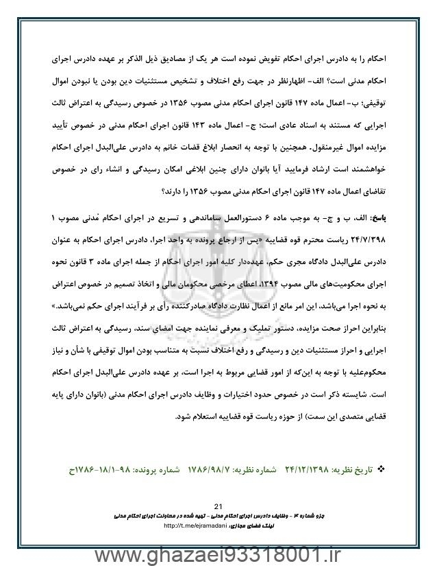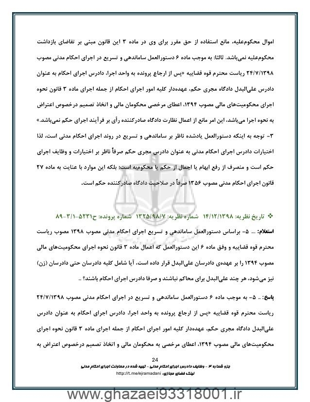 وظایف دادرس اجرای احکام مدنی